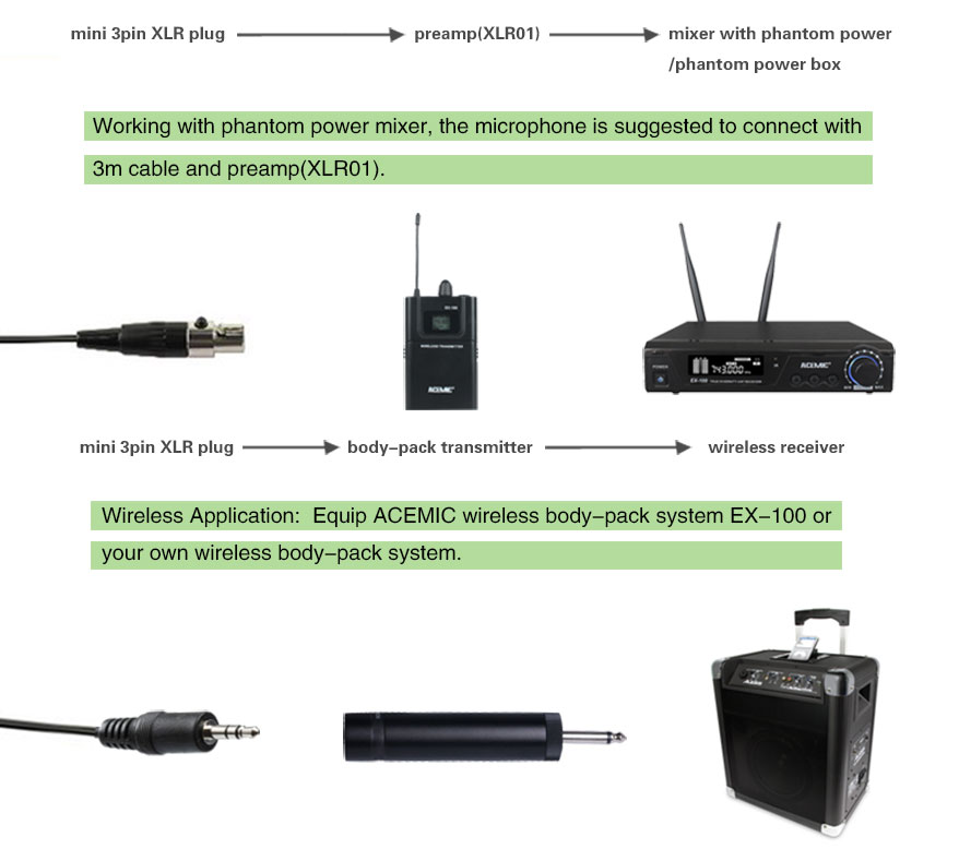 Connect the XLR switch connector and phantom power or